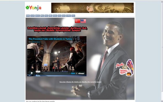 Türkiye'nin lider online sosyal ağı ve en büyük gençlik portalı Yonja.com, ABD Başkanı Obama'nın tarihi Türkiye ziyareti sırasında öğrencilerle gerçekleştirdiği toplantıyı 7 Nisan Salı günü saat 12.20’de canlı olarak yayınladı. Yonja.com, bir parçası olmaktan gurur duyduğu bu görüşmeyi milyonlarca genç insana dijital yayın sponsoru Alpella Ole aracılığıyla sundu.