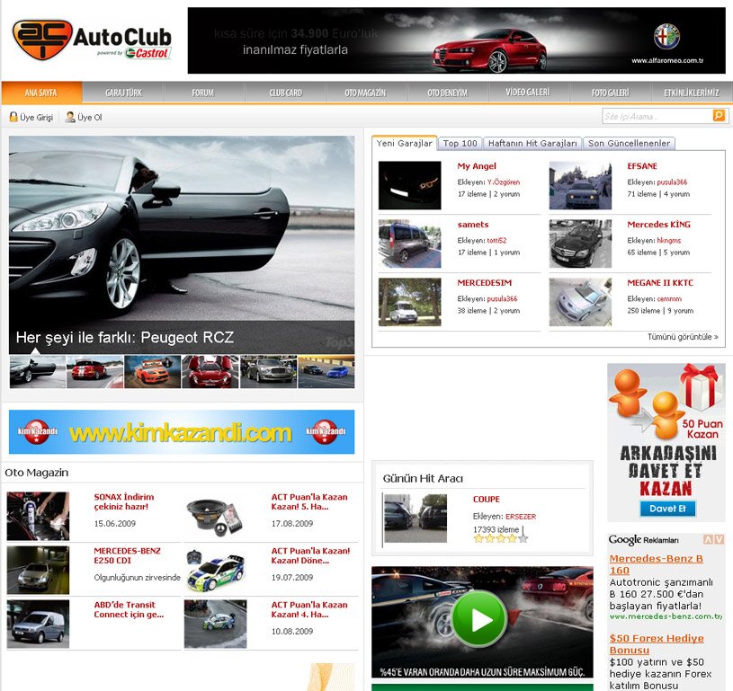 Autoclub.com.tr, 60.000'den fazla üyesiyle Türkiye'nin en büyük otomobil kulübü olmasının yanı sıra, sadece internette değil, dev konvoyları, büyük etkinlik ve organizasyonlarıyla caddelerde de büyümeye devam etmektedir. Türkiye'nin dört bir yanındaki binlerce otomobil camlarında ACT çıkartmalarını taşıyarak dolaşmaktadır. Sadece ACT'de bulunan ve şu an kayıtlı araç sayısı 10.000'e yaklaşan GarajTurk uygulaması, otomobil tutkunlarına araçlarını sergileme, bilgi paylaşımı ve oylama şansı vermektedir. Dahası, ACT forum alanları, ustaları ve amatörleri bir araya getiren eşsiz bir tartışma platformu da sunmaktadır.