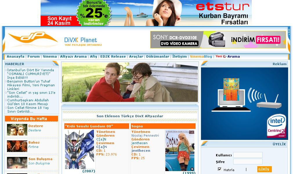 Divxplanet, bir sinema kültürü sitesidir. Site aracılığıyla güncel sinema filmlerinin tanıtım ve duyuruları takip edilmekte, sinema tarihinin iz bırakmış filmleri tartışılmakta ve sinemaseverlerin internet üzerinden temin ettikleri her türlü sinema materyalinin Türkçe ve diğer bazı dillere ait altyazılarına ulaşılabilmektedir. Sinema filmlerinin yanı sıra, dünyada fırtınalar koparan dizi filmler de divxplanet üzerinden seyredilmektedir.