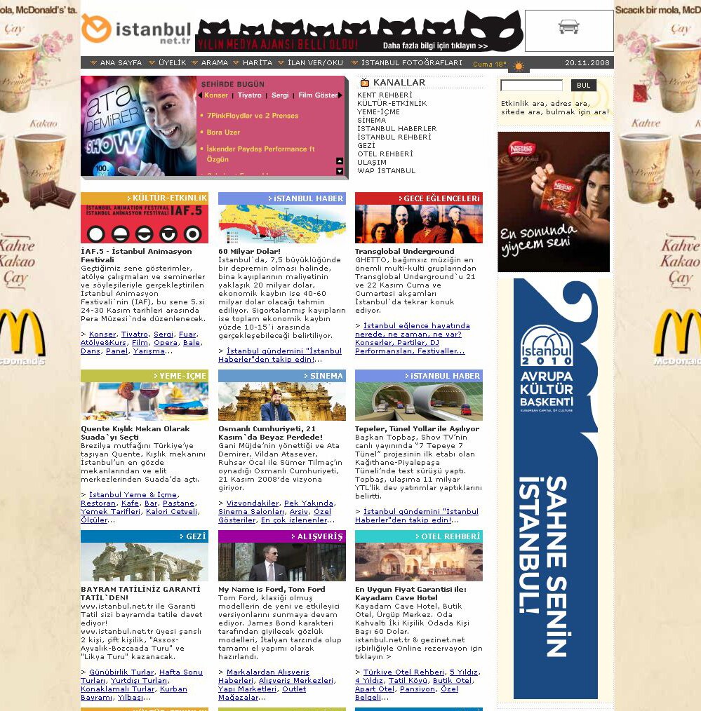 1995 yılında internet yayıncılığına başlayan www.istanbul.net.tr, Türkiye’nin ilk internet şehir rehberidir. Bir şehir rehberinde mutlaka yer alması gerekli bilgiler olan; kültür-sanat, yeme-içme mekan rehberi, otel rehberi, harita, telefon ve adres defteri, ulaşım rehberi, İstanbul tarihi ve turizm rehberi, fotoğraf albümü ve istanbul yaşam rehberi sitenin en önemli bölümlerini oluşturmaktadır.İstanbul’da yaşayanlar ve İstanbul’u ziyaret edecekler için, çok gerekli olan online haritanın flash versiyonu da bulunmakta ve 27.000 parçadan oluşan zoom-in ve zoom-out özelliği ile 8 farklı yönde hareket edebilmektedir. Site içeriğine WAP erişimli cep telefonları ile wap.istanbul.net.tr adresinden de erişilebilmektedir.