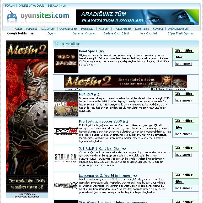 Oyunsitesi.com, 1999'dan beri onbinlerce üye ve ziyaretçisine, deneyimli bir kadro tarafından hazırlanan güncel oyun incelemeleri, çözümler, haberler ve en büyük Türkçe oyun hilesi arşivini sunmakta, ayrıca forumlarında ziyaretçilerin kendi arasında etkileşim kurmasına olanak sağlamaktadır.”